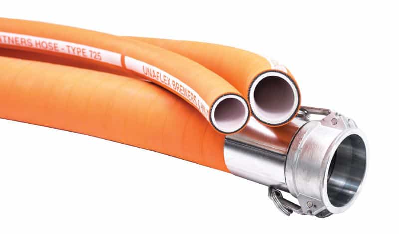 The 726 Series Brewer’s Hose is a multi-purpose high pressure sanitary FDA discharge hose, suitable for moderate vacuum to full vacuum, designed to transfer a wide range of food and beverage products. The smooth white tube will not impart taste or odor. The cover offers excellent oil, weather and abrasion resistance. Suitable for steam cleaning at 250°F for 15 minutes.
